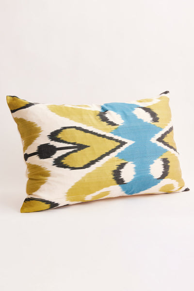 Woven with a silk cotton blend and featuring a lovely ikat design in shades of green, teal, cream and navy, this cushion cover will provide an eclectic and unique touch to your home deco.