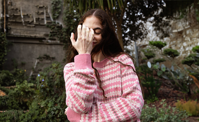 Intricate hand-screen print in camel and navy, upon a weighty textured cotton base. A modern silhouette, structured with light quilting, open side seams with chunky cotton twill tie fastenings, and symmetrical front patch pockets. Fully lined in a contrast motif print with bound seams for optional reversibility.