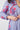 Our easy-wear A-line midi length Viva Dress features a hand-screen printed bold floral with a striped blue backdrop. Pintucking through front yoke with easy gathering on the shoulder to create a delicate puff sleeve. Pretty inserted lace trim at the yoke and frill collar. Fabric covered button with rouleaux fastening. Elastic shirred cuffed. Delicate tubular rolled belt with pink cotton tassel.